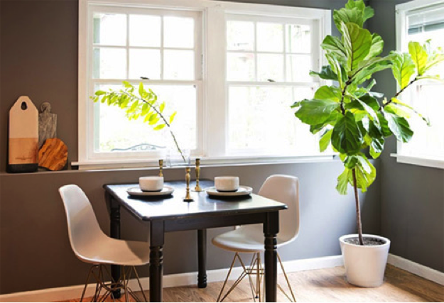 Phòng ăn là nơi đoàn tụ của các thành viên trong gia đình, hơn nữa đây còn là nơi mà những câu chuyện, những chia sẻ của các thành viên được giãi bày. Vì vậy, những loại hoa cây cảnh bài trí ở đây cần tạo được cảm giác ấm cúng, gần gũi, thoải mái và vui vẻ.